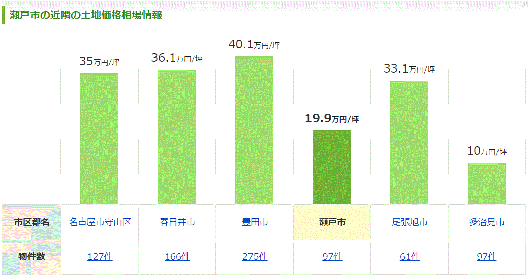 比較的土地価格は安い割に、商業施設・育児面・教育面も整っており、近年は近隣の商業施設の増加・教育制度の強化から瀬戸市に移り住む方も増えつつあります。