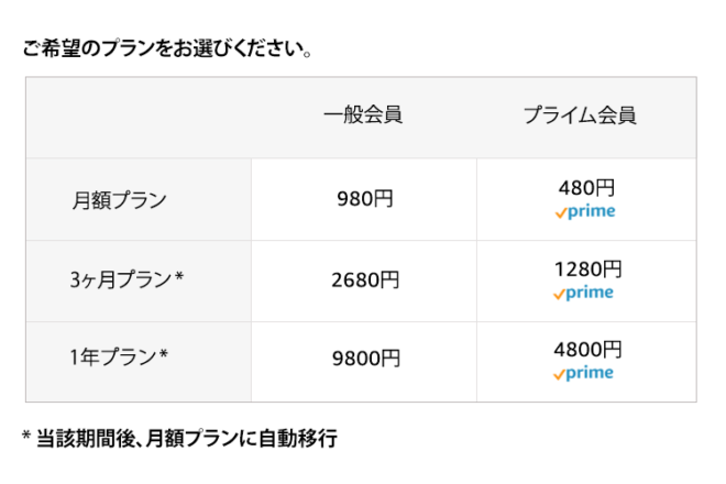 プライム会員なら月額480円で1か月無料体験あります。最初は自身のスマホでお試ししてみてはいかがでしょうか。